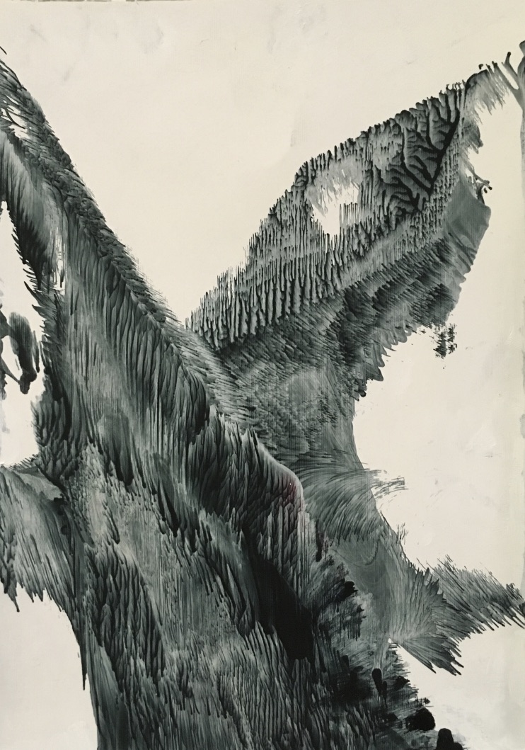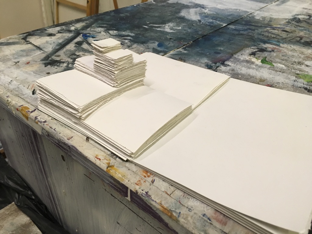 I have a 220x180cm canvas in my studio which is standing unpainted against my studio wall. As a size comparison, I worked out that it was a similar transition from my smallest, stamp-size painting, up to an A4 page. The exponential growth of ideas and possibilities between those sizes is truly mind blowing. My main aim for this term was to discover what it means to paint big and working my way up seems like a logical approach.
