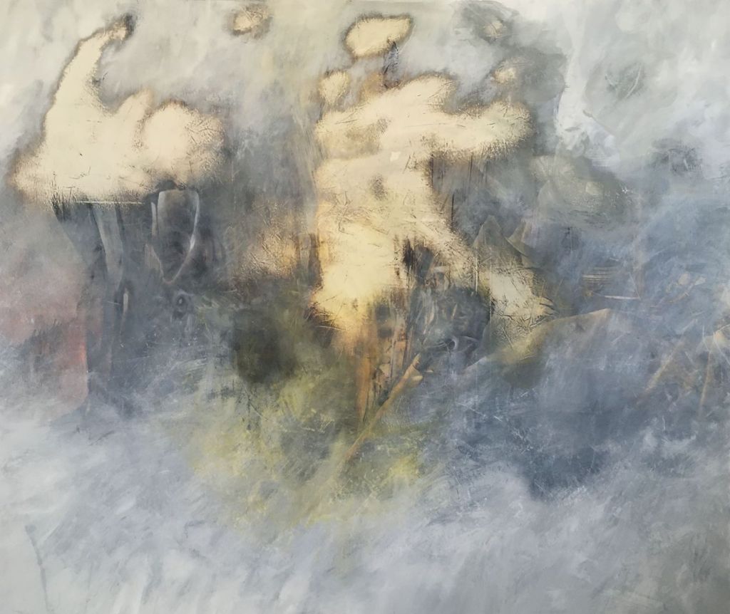 I don’t seem to know when to stop! I got to an interesting stage but then painted over with white because compositionally it didn’t work for me. I wanted to simplify things. The strength of a small composition on a large scale, in a sense, enlarging one of my sketches without directly working from it. This would surely work if I could paint it in a similar way but of course that isn’t entirely possible. I am still working on developing ways to complete it in the same manner.
