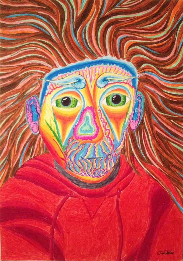 My mother commissioned a portrait of herself and although I didn’t feel it was along the same path as my art is, I was interested in how I might combine the two. I would draw freely and from imagination but instead of silencing my mind completely, I filtered through memories I have of her in my mind’s eye. The resulting portrait was not terribly well received as she said it was not a good likeness but I genuinely believe that the image couldn’t be much better! This portrait is not how my mum sees herself but it was how I saw her at the time. Some people might say that I was just on drugs or something but the emotion conveyed through her large sincere eyes, her lips pursed anxiously, gentle eyebrows floating in a disappointed air of concern. I felt that she was very worried for me, and that’s what came out.