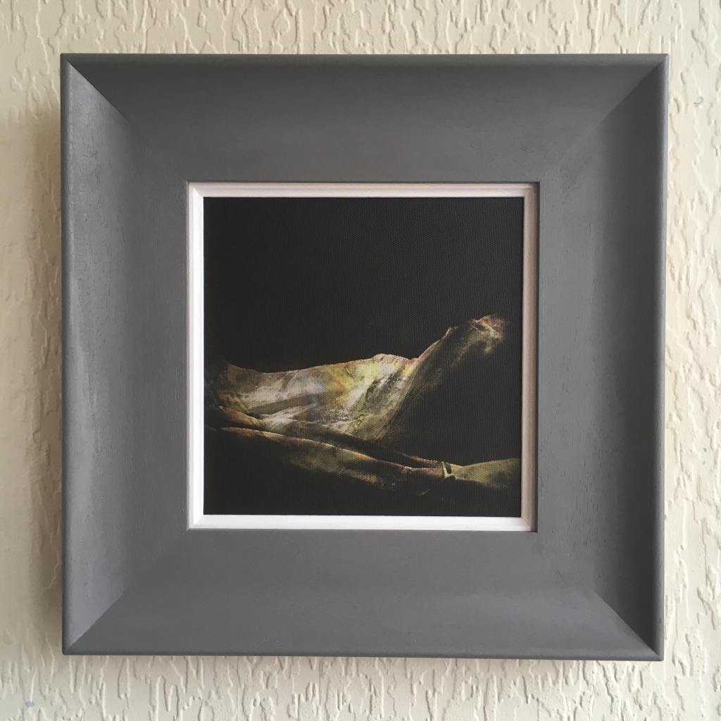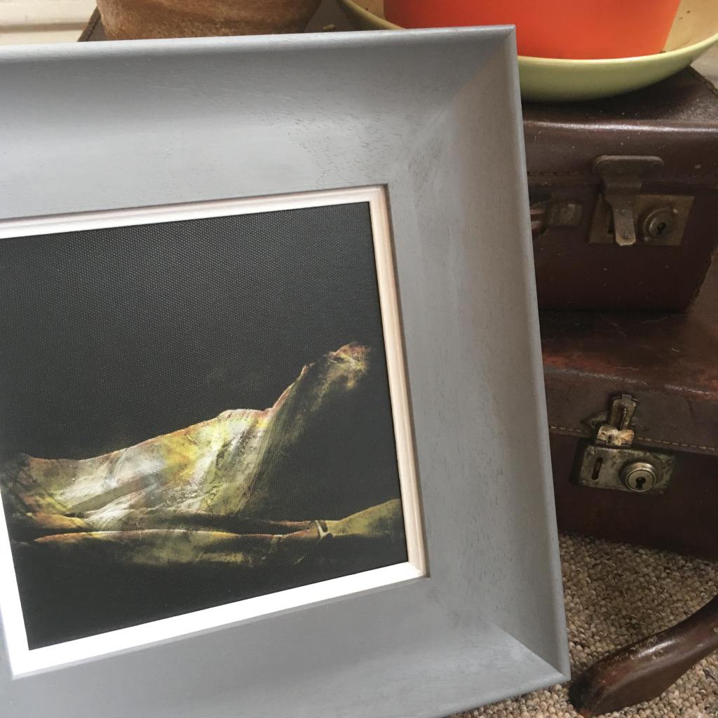 Print on canvas of Iter with a neutral grey ‘scoop’ frame that would suit any wall colour – With the lovely addition of a white trim to contrast the dark tones of the image!